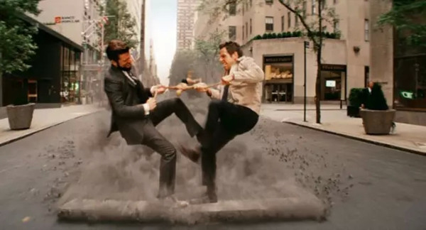 大部分的片段都是在曼哈顿实景拍摄的,然后MPC在镜头中添加数字的环境、车辆、部分的数字替身以及路上滑雪痕迹。“我们其实可以在绿幕上拍摄整个片段。”Rocheron说道,“但是这样的话就不能有自然的灯光,而且街道的整个环境可能会非常复杂。实际的拍摄是结合了站在各种器材上穿街过巷的演员,也有采用轮滑的特技演员。”