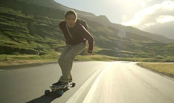 美化的现实:沃尔特非常看不惯他的新敌人——《Life》杂志的企业移管经理泰德(Adam Scott 饰),所以他幻想出跟泰德在城市的街道进行滑雪板对决。